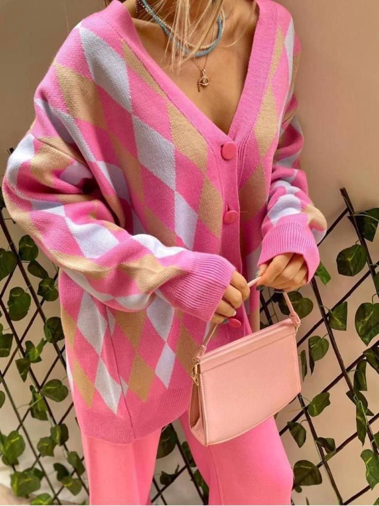 Ζακέτα με ρόμβους – Ροζ