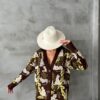 Μακριά ζακέτα με με μεγάλα κουμπιά μπροστά και λαιμόκοψη σε σχήμα V.Ελαφρώς χαμηλή μανικοκόλληση και μακρύ μανίκι με στενή μανσέτα. Ριμπ μανσέτα και τελείωμα.