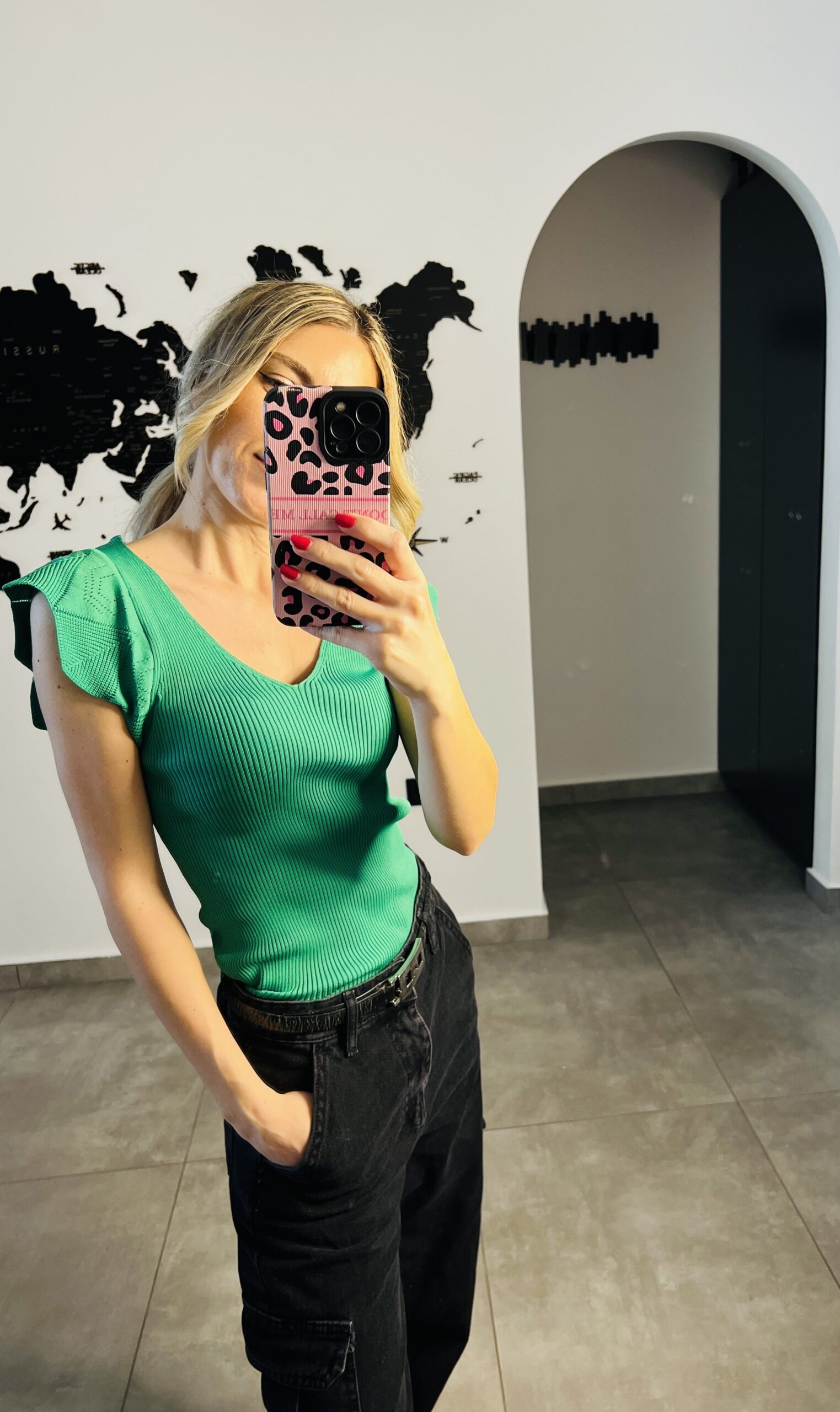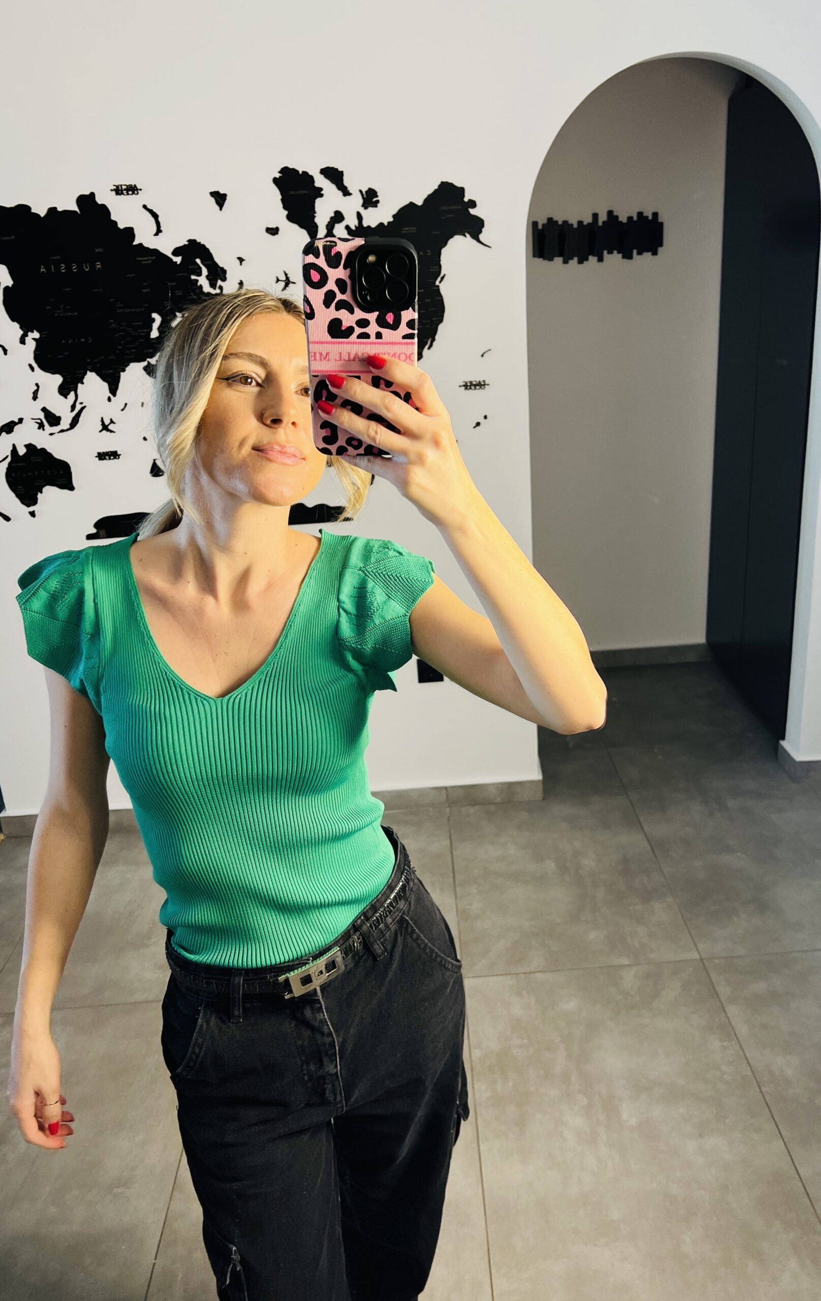 Κοντομάνικο πλεκτό μπλουζάκι με λεπτομέρεια στο μανίκι – Πράσινο