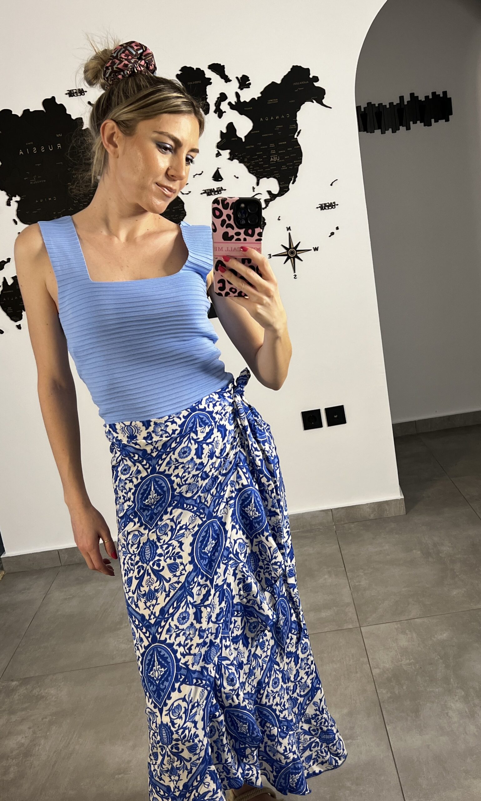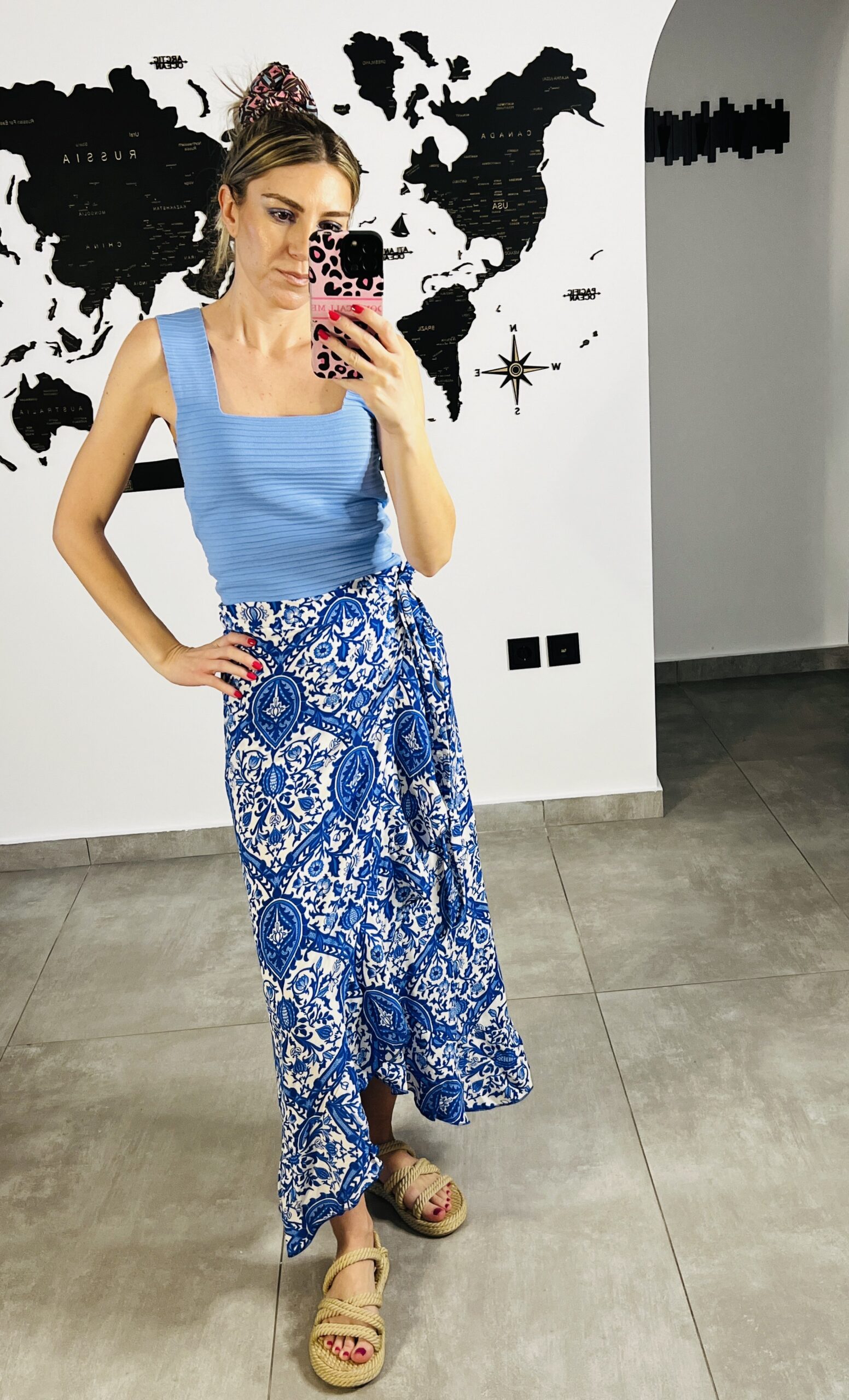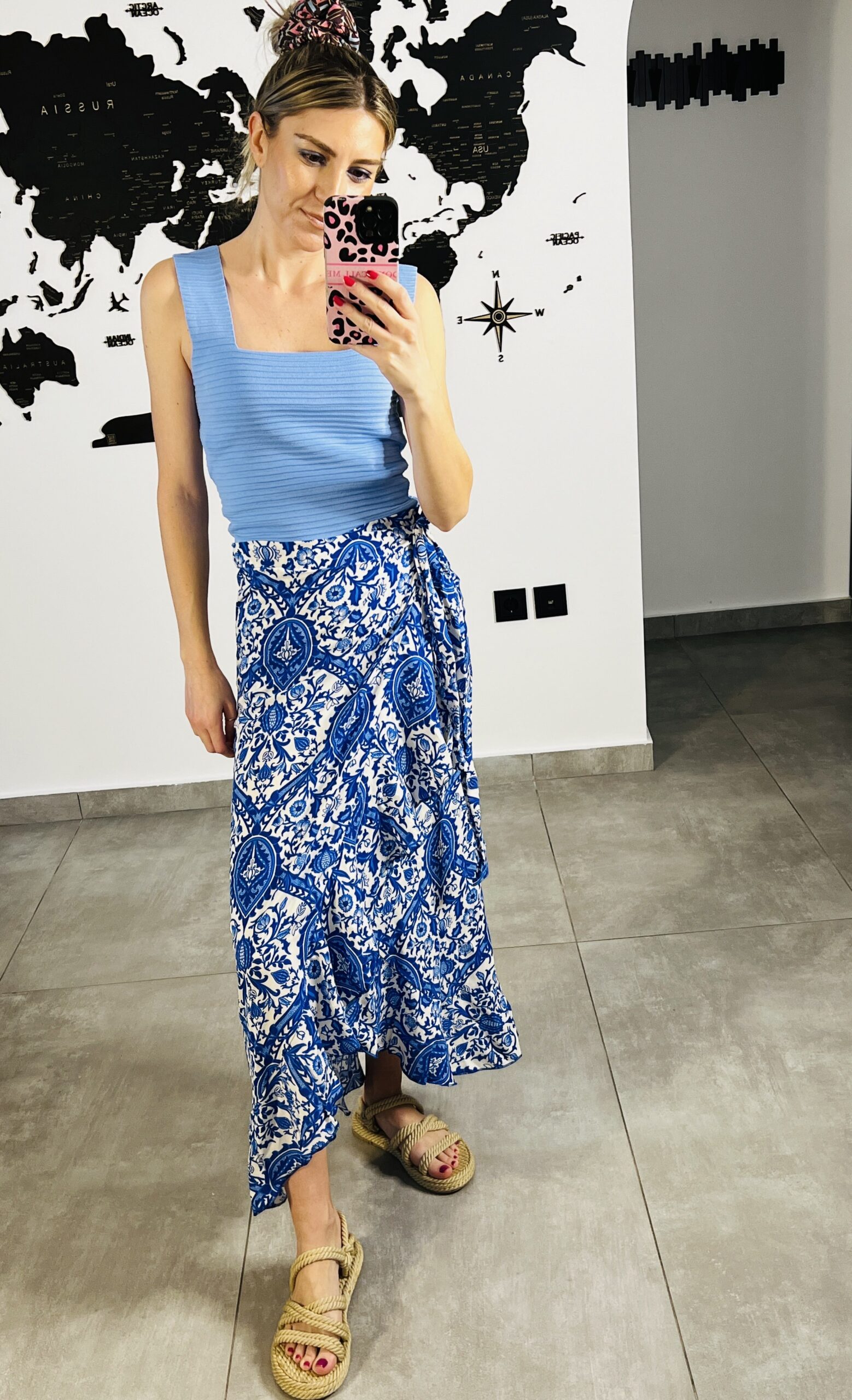 Μάξι φούστα παρεό χωρίς φερμουάρ και κουμπιά προσαρμόζεται σε κάθε σωματότυπο.