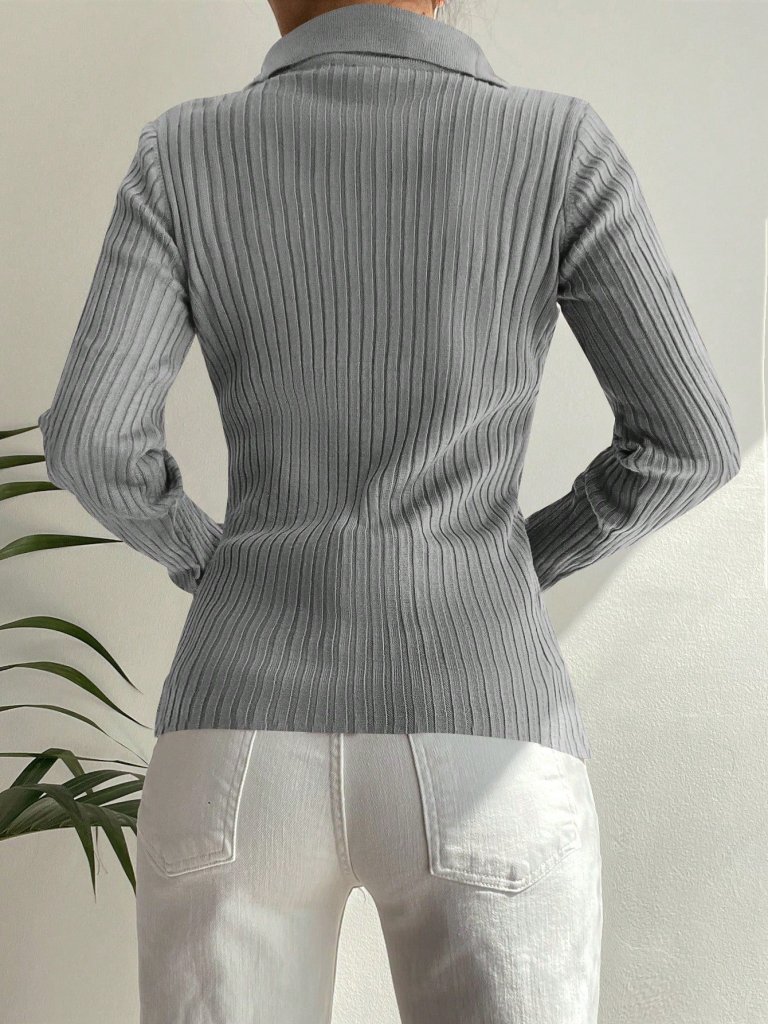 Πλεκτή μπλούζα με πλέξη ριμπ,μακριά μανίκια και πόλο γιακά.