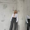 Εβαζέ ψηλόμεσο παντελόνι με όψη δέρματος που κλείνει με φερμουάρ και κουμπί.Ανοίγματα στο πλάι και απο τις δυο πλευρές.