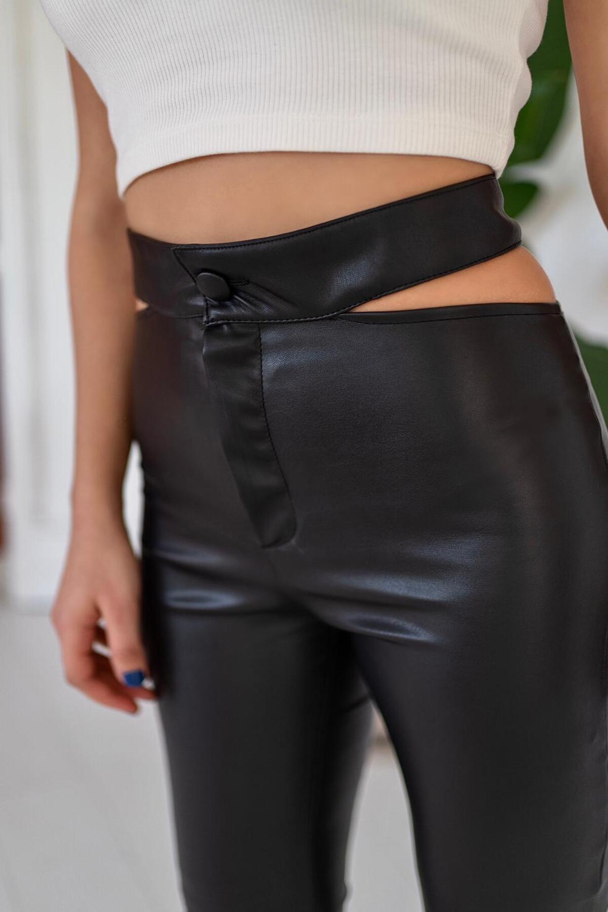 Παντελόνι με όψη δέρματος και ανοίγματα στη ζώνη – Μαύρο