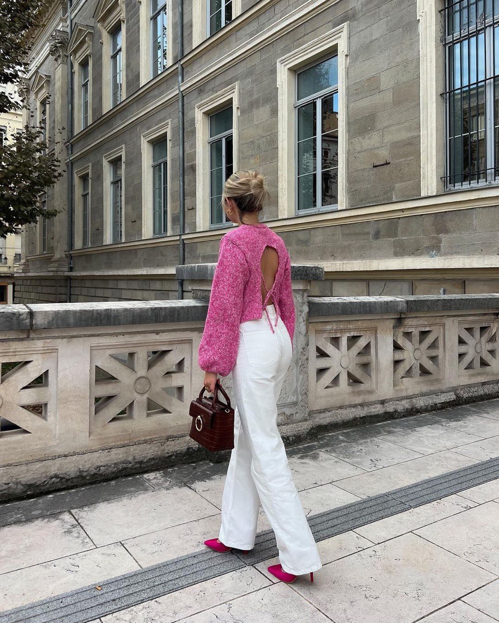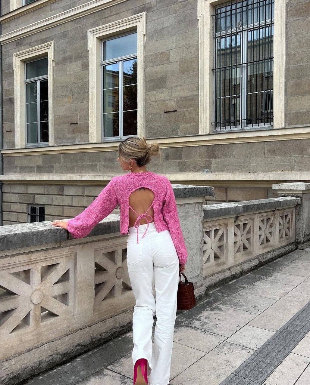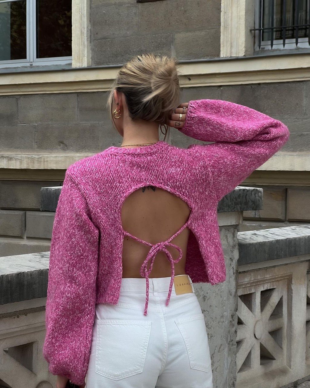 Πουλόβερ πλεκτό με ανοιχτή πλάτη – Ροζ