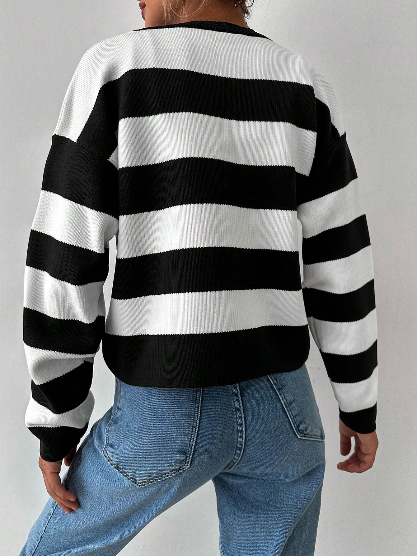 Κοντή ζακέτα με στρογγυλή λαιμόκοψη, κουμπιά μπροστά και μακρύ μανίκι.