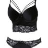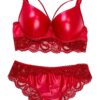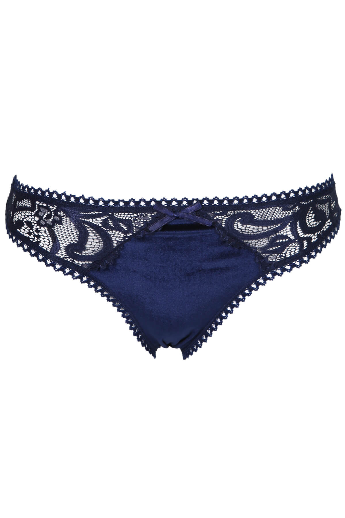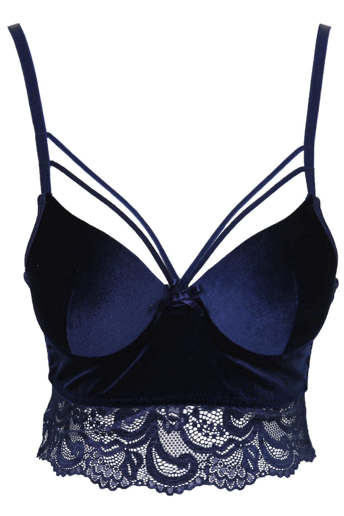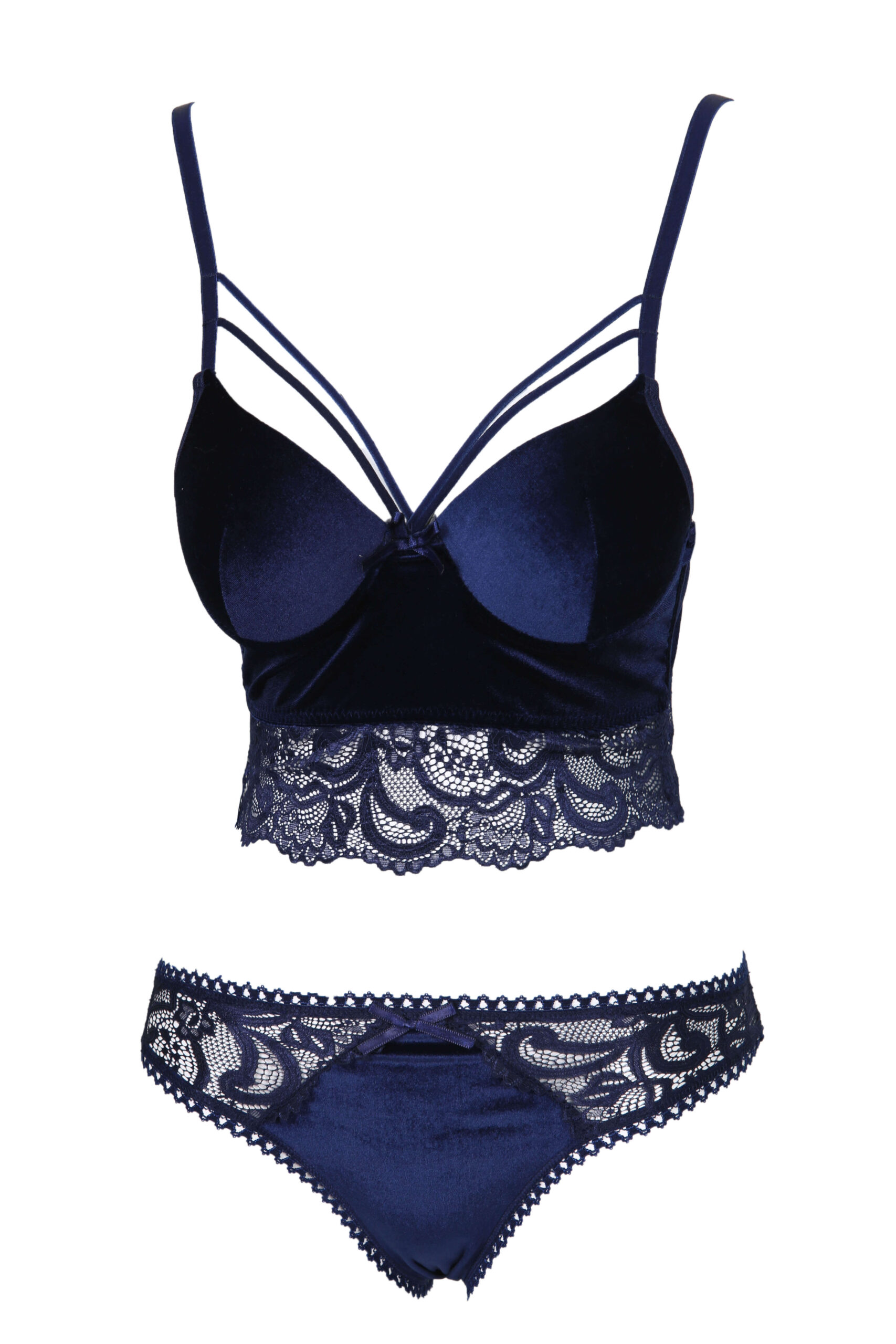 Σετ εσώρουχα με ενίσχυση βελούδινα με δαντέλα – Μπλέ