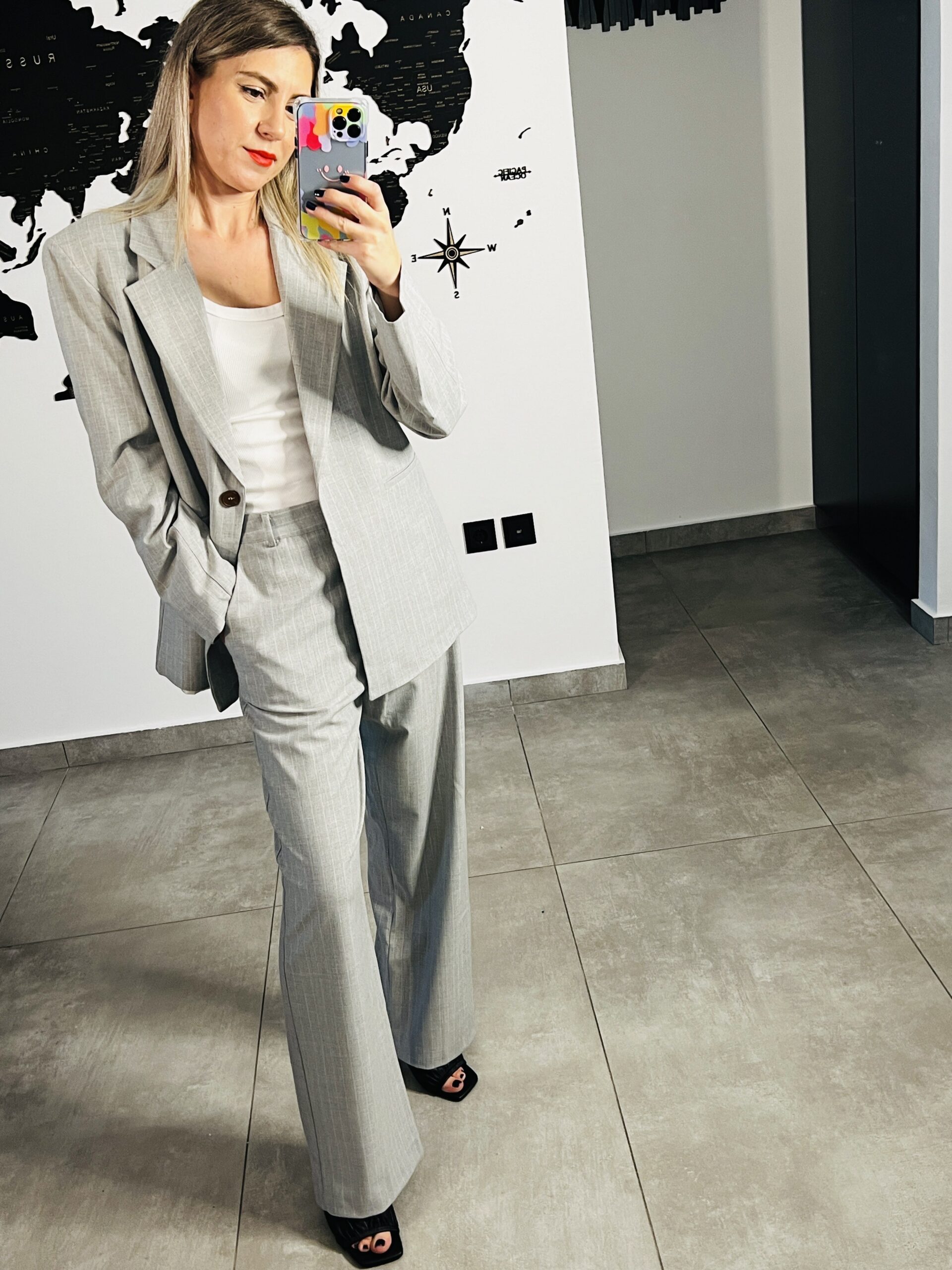 Σετ με μπλέιζερ και παντελόνι ριγέ – Γκρι ανοιχτό