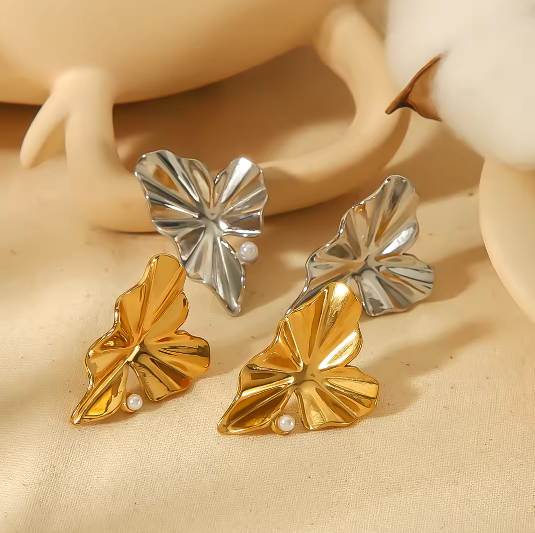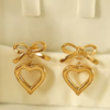 Σκουλαρίκια επιχρυσωμένο ατσάλι φιόγκος και καρδιά